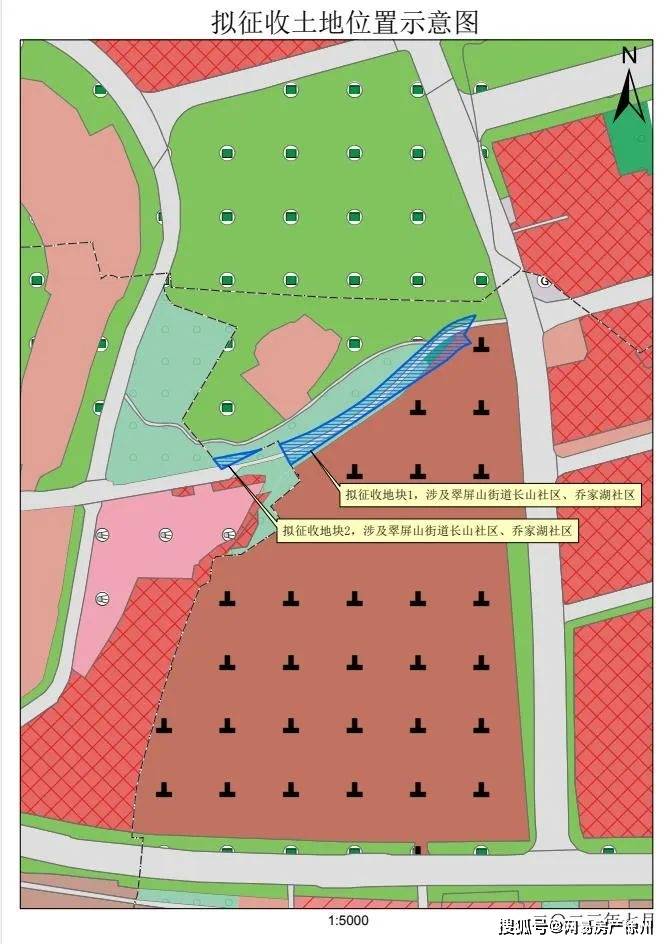 本次拟征收土地位于翠屏山街道办事处长山社区、乔家湖社区范围内。拟征收土地位置详见附图。