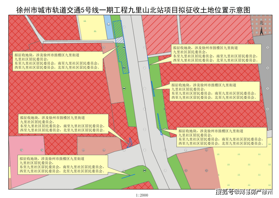 据公告显示,本次拟征收土地位于九里街道,共有6块地将被征收,将用于建设5号线一期工程九里山北站,拟征收土地位置详见附图。